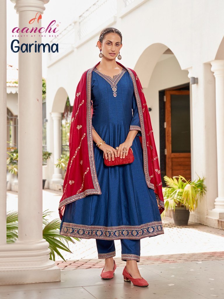 Aanchi Garima Flair Style 3 Piece Vichitra Silk Set Wholesale Ethnic Wear