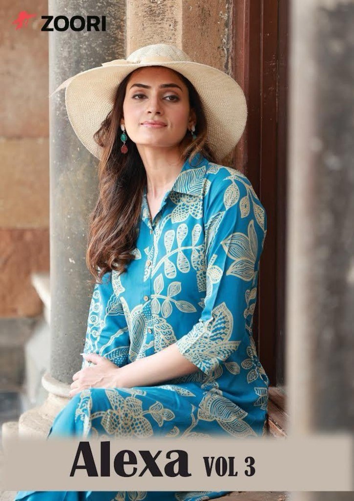 Alexa Vol 3 collection by Zoori. Designed in rich premium reyon fabric, each piece in this catalogue brings together vibrant prints, comfortable stitching, and contemporary cuts, perfect for festive flair or casual chic.