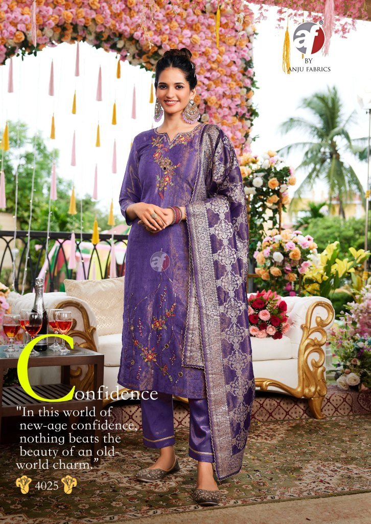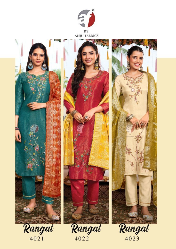 Anju Rangat Tissue Shimmer Kurti Pant with Contrast Dupatta Heavy Embroidery And Handwork Ethnic Set Wholesale