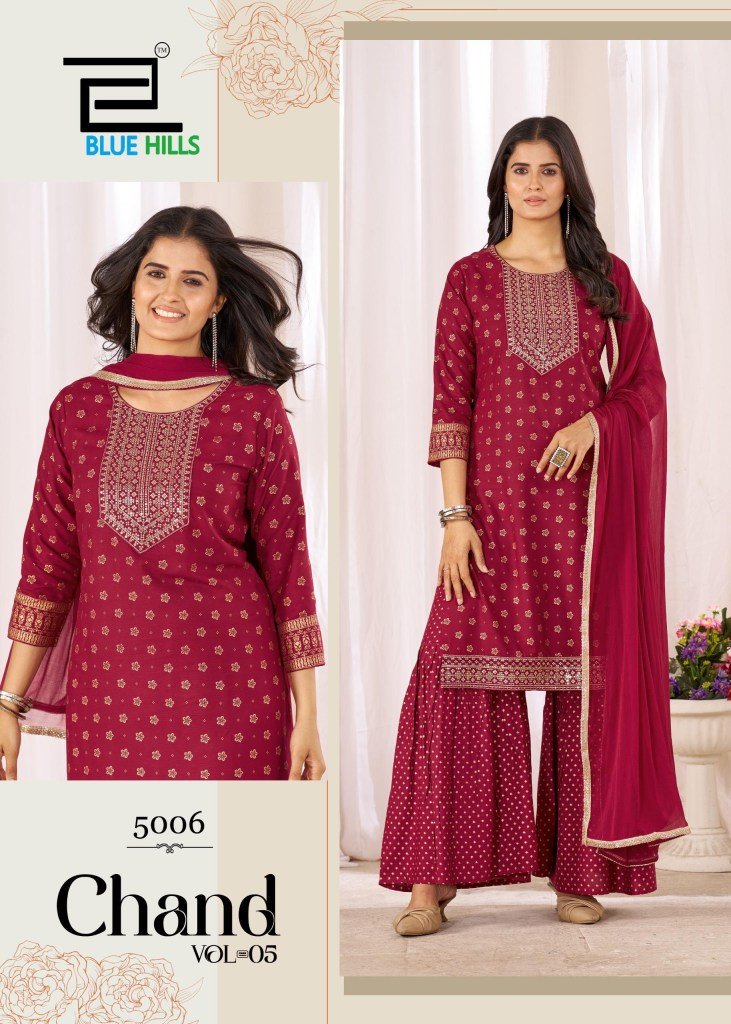 Blue Hills Chand Vol 5 Rayon Printed Kurti With Sharrara And Dupatta Collection