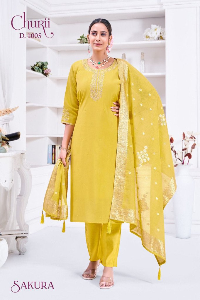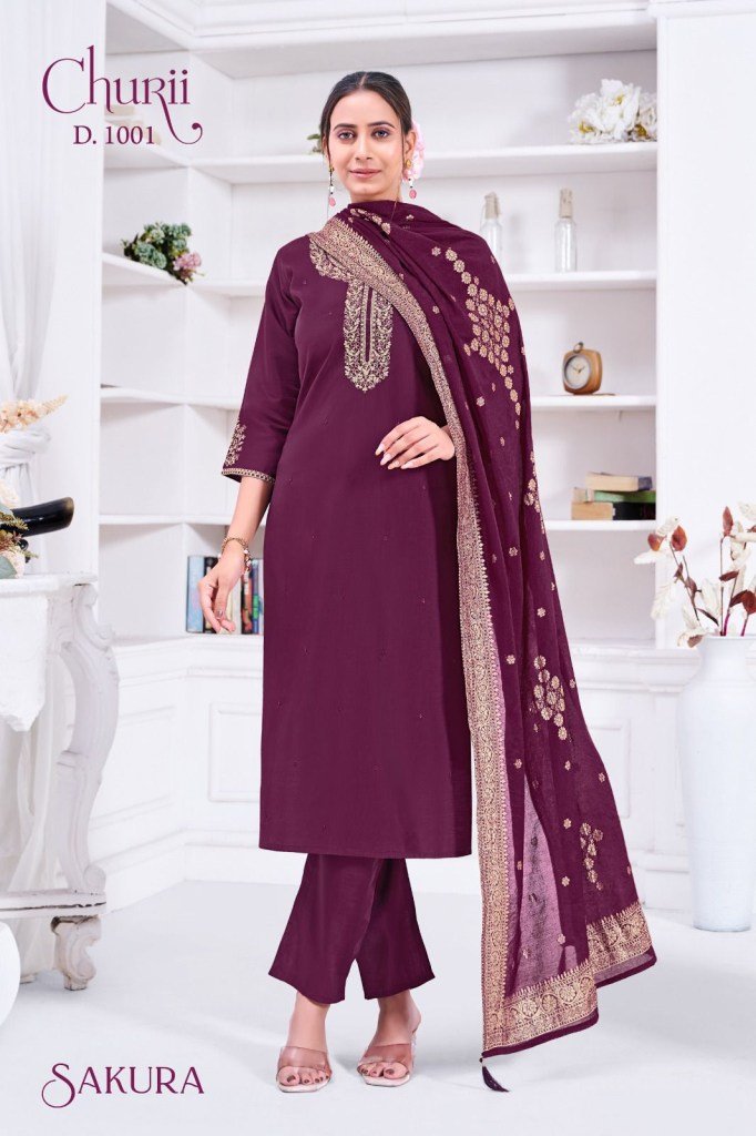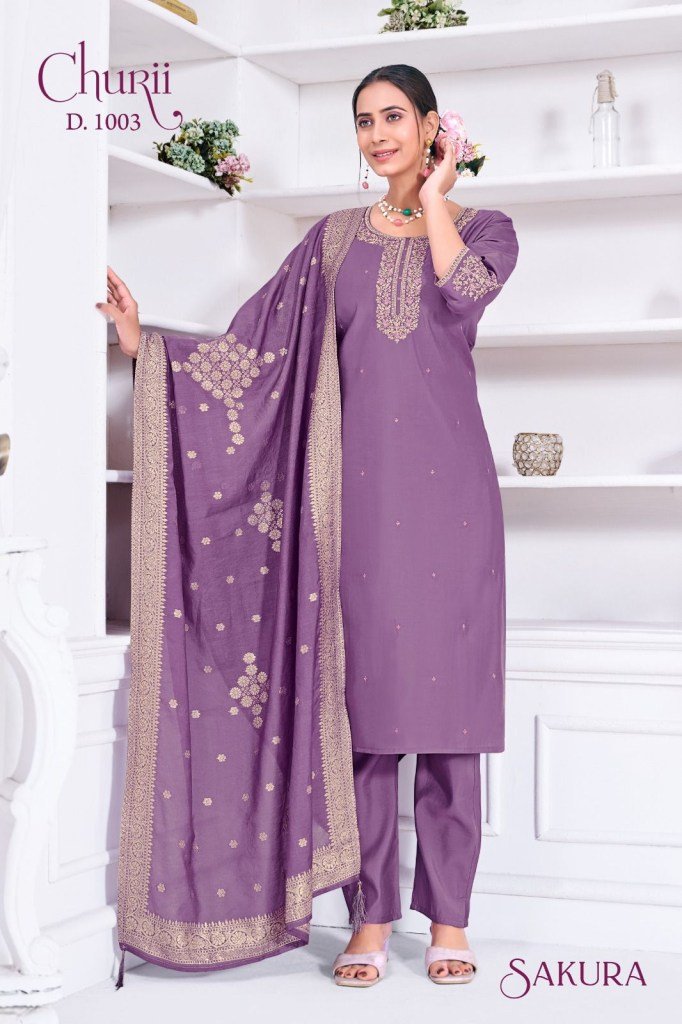 Churii Sakura Readymade Set Soft Viscose Roman Silk Kurti with Embroidery Pant And Jacquard Dupatta Wholesale