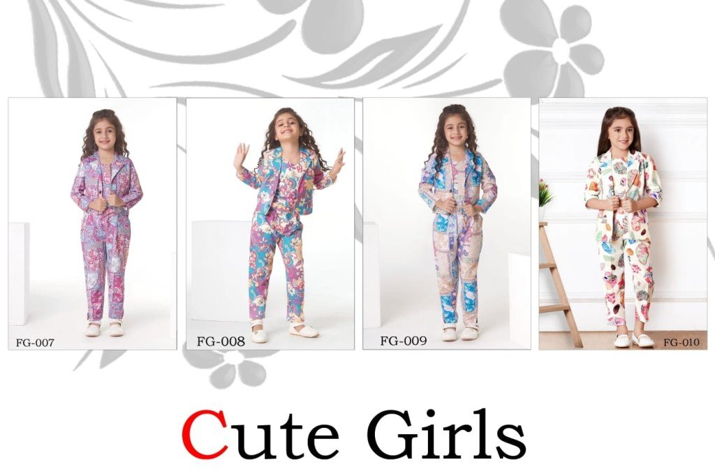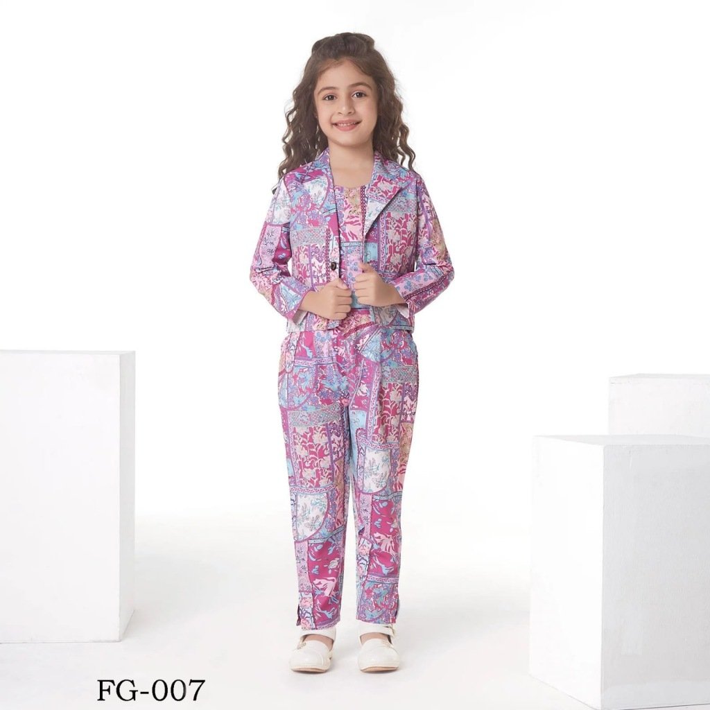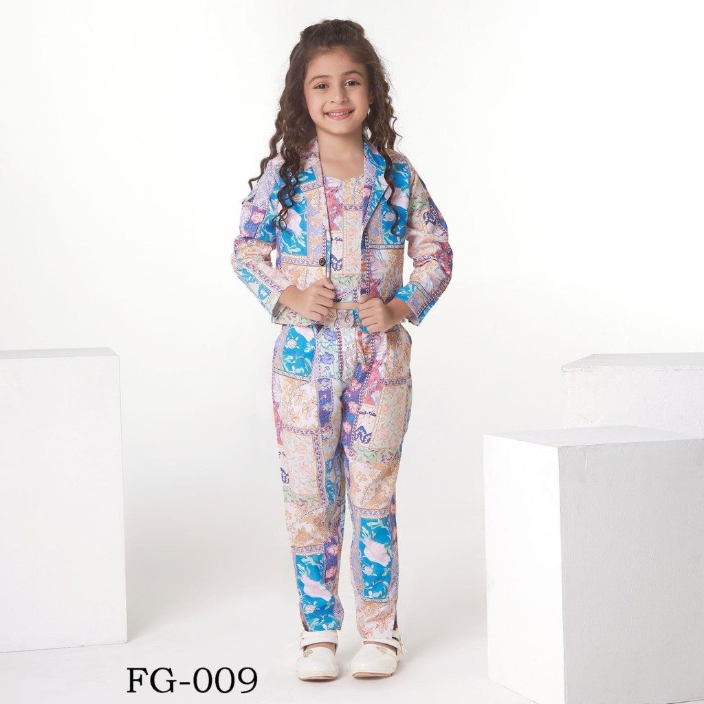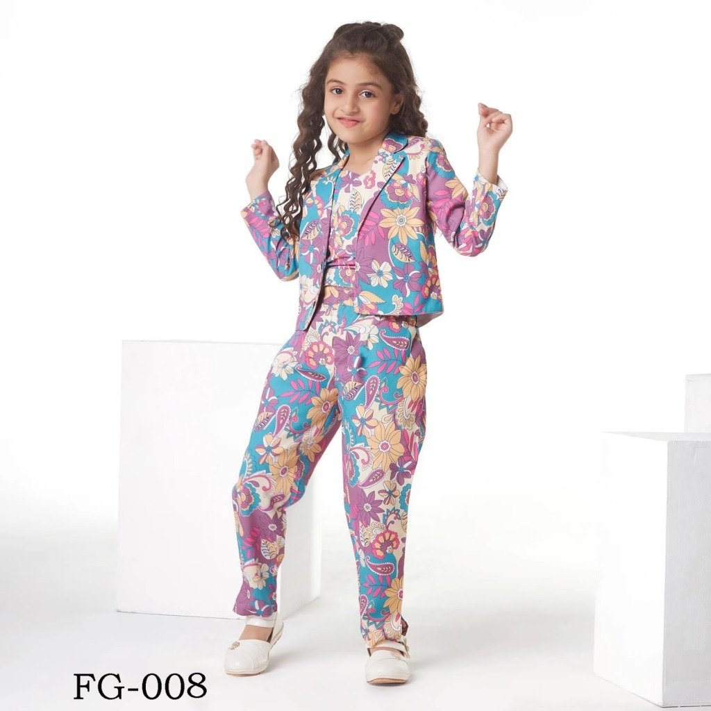 Fashion galleriya by Cute girls fancy printed cotton girls co ord set catalogue at low rate, AB Cotton (Inner Attached) blazer with AB Cotton (2 Side Pocket) pant and Digital Print.