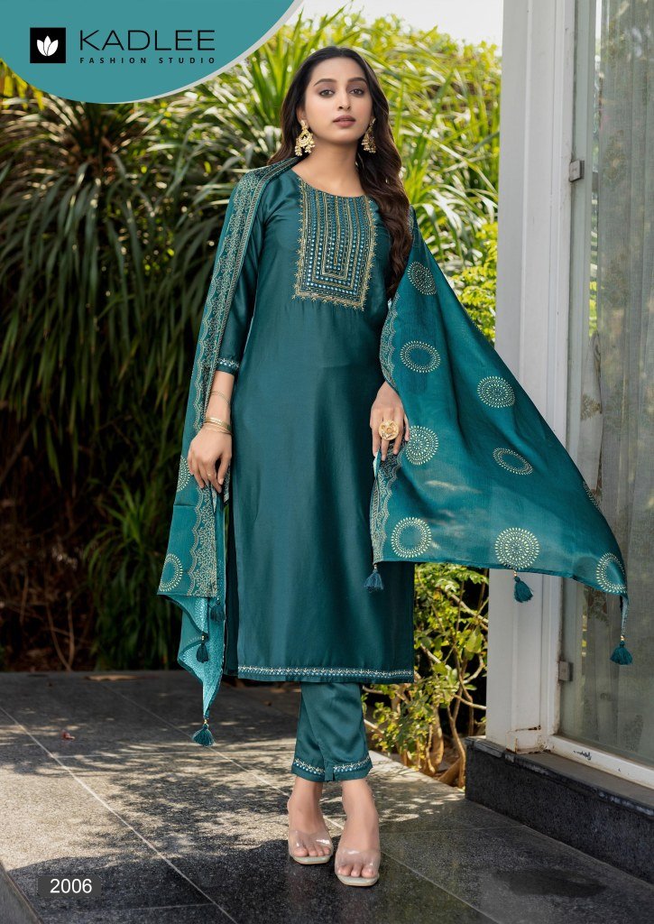 Kadlee Fitoor Hand And Threadwork Gajji Silk Top with Gajji Silk Bottom and Chinnon Print Dupatta Wholesale