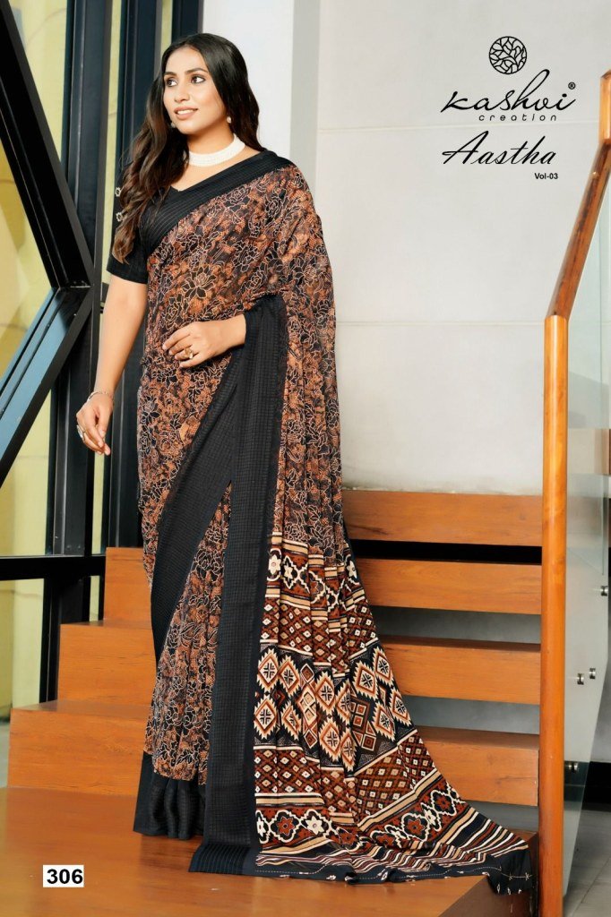Kashvi Creation Aastha Vol 3 Georgette Jacquard Saree with Jari Print Border Wholesale