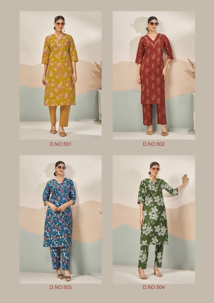 Laado Kavya Vol 5 Heavy Cotton Printed Kurti Catalogs Long Cord Set Top with Lace Printed Plazzo Pants Wholesale