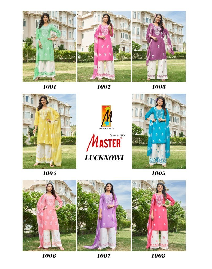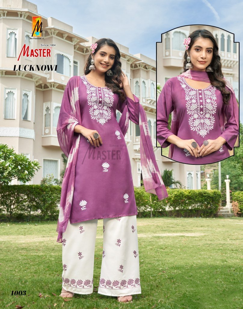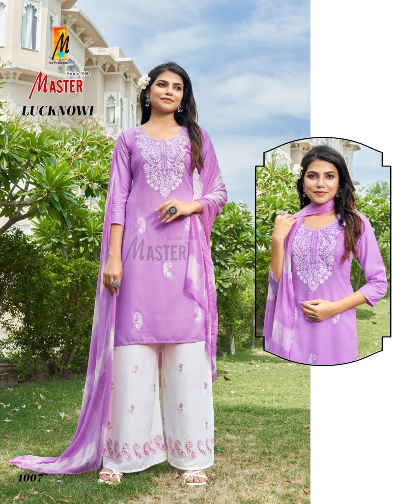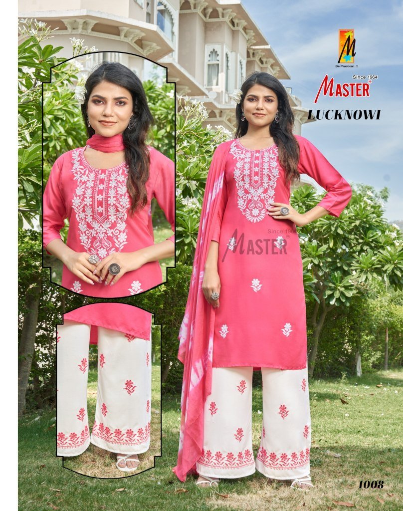 Master Lucknowi Luxe Rayon Lucknowi Kurti And Plazo Set With Sinduri Dupatta Wholesale