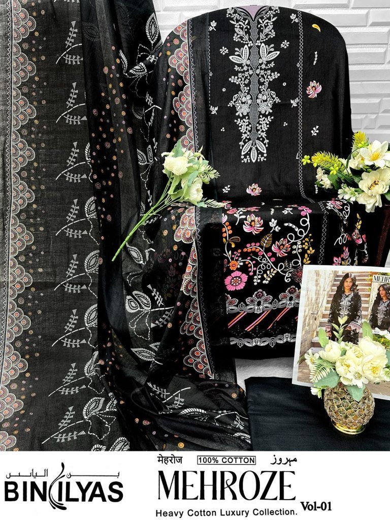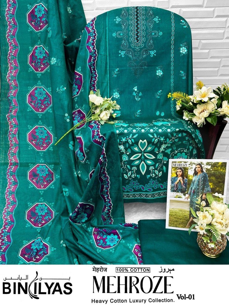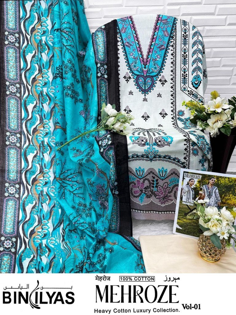 Mehroze vol 1 by Binilyas Pure Heavy Cotton Designer karachi suit collection in law rate