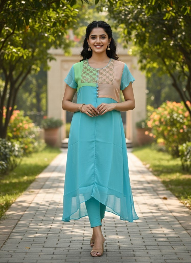 New Look Vol 3 Fancy Georgette Handwork Kurti Top Elegant Party Wear Wholesale