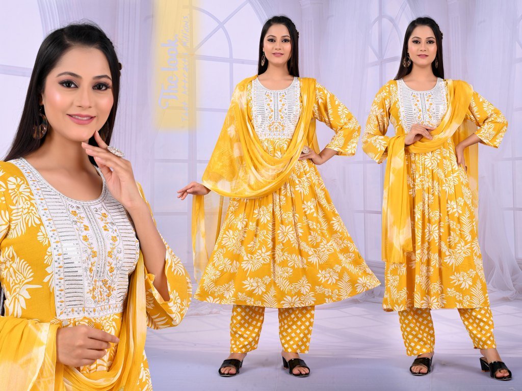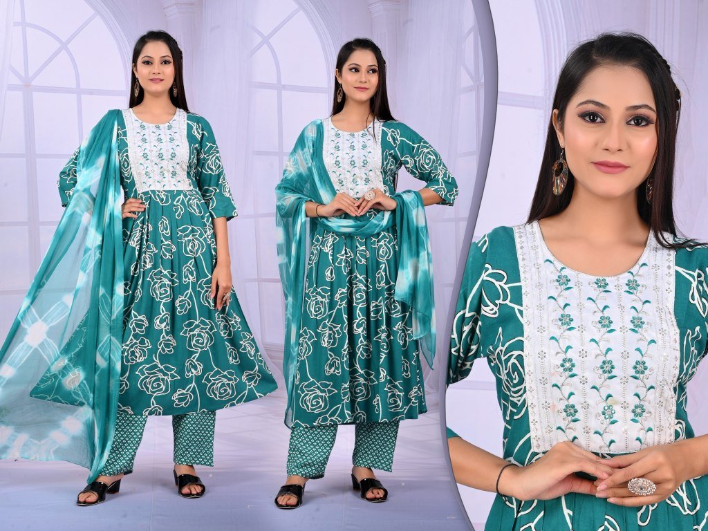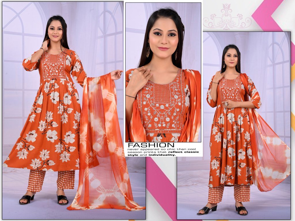 Padmavati Karishma Vol 1 Rayon ODP Print Suit Set with Gala Work And Naznine Saboori Dupatta Wholesale