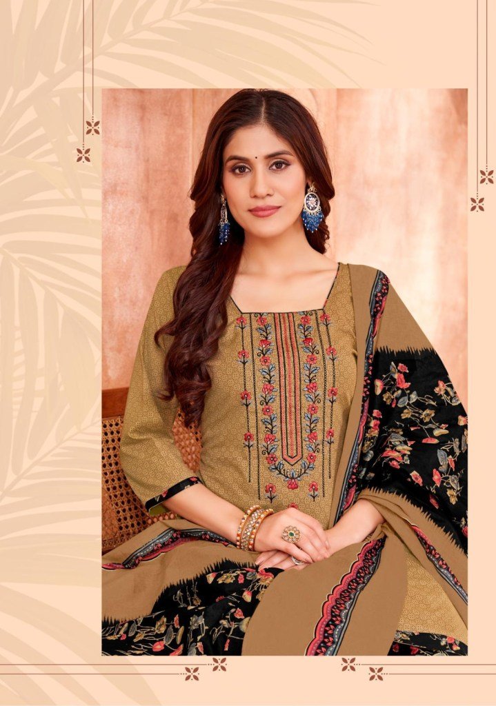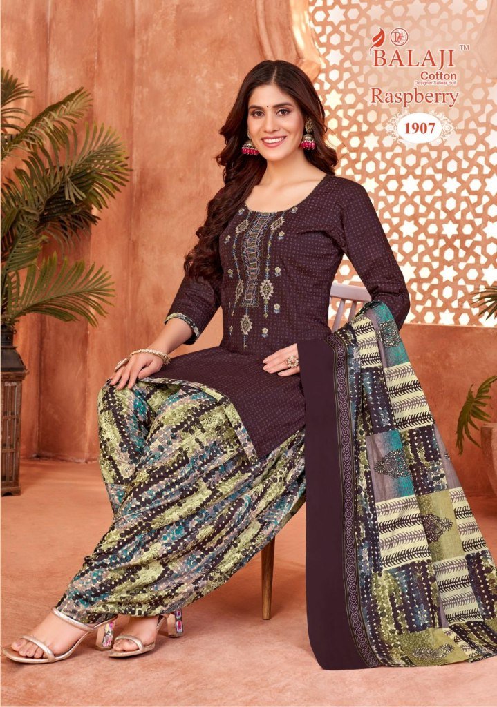 Rasberry Vol 19 by Balaji, featuring pure cotton printed dress materials with elegant embroidered neck work. Shop this budget-friendly ethnic wear collection at the best rates now.