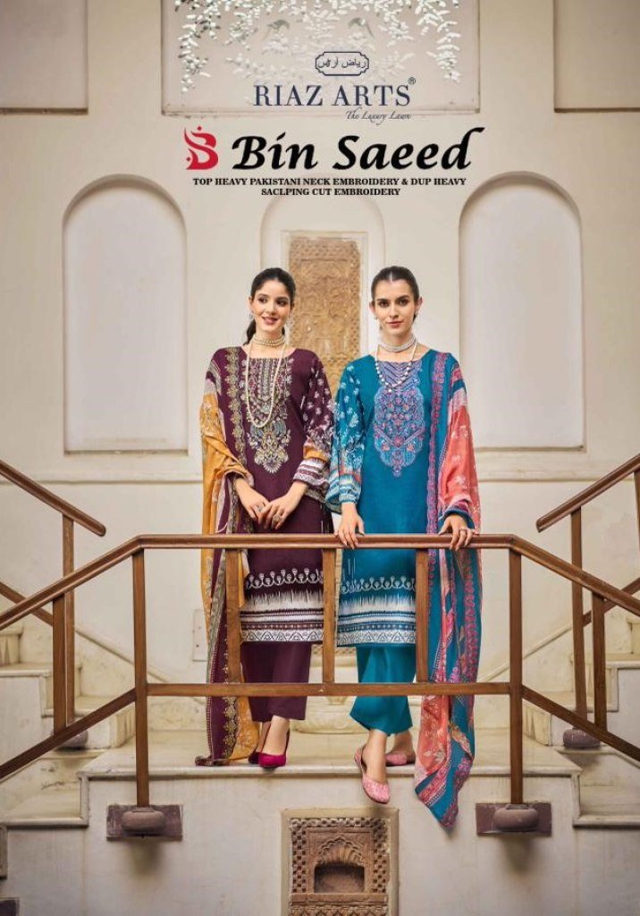 Riaz Arts Bin Saeed Vol 11 Designer Pure Cotton Embroidered Suits Wholesale Digital Print Collection