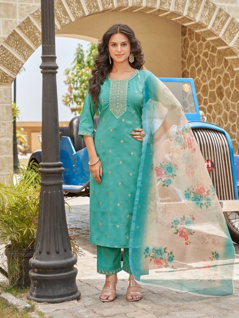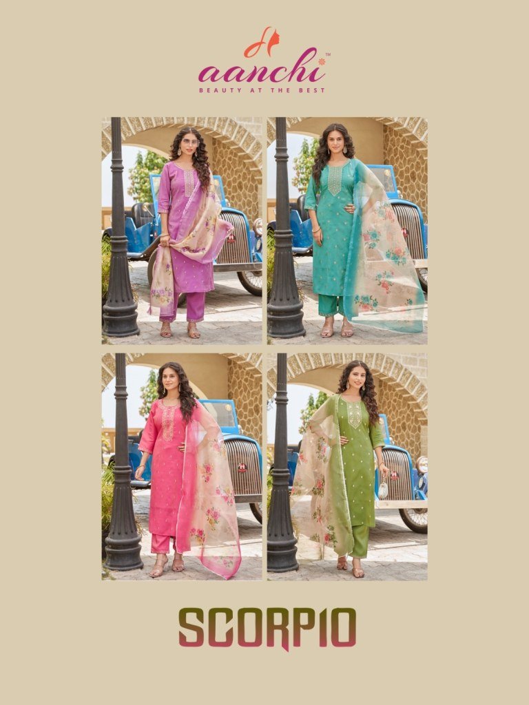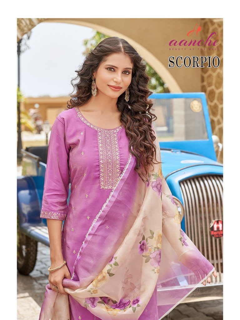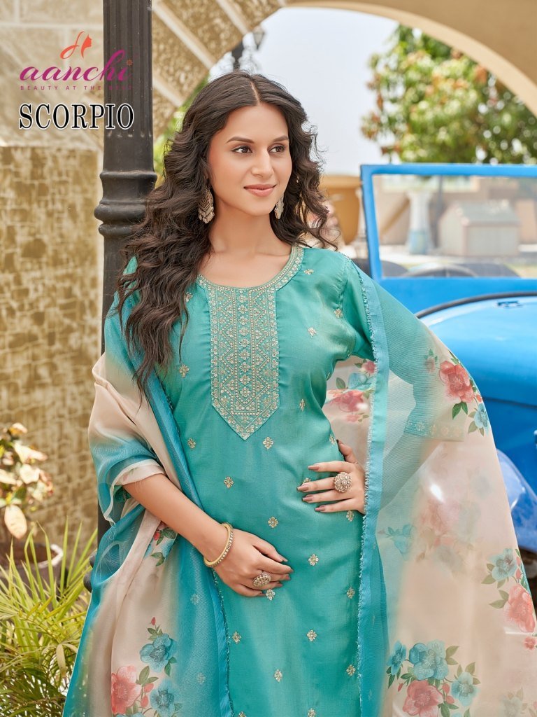 Scorpio by Aanchi 3 piece Straight Roman shimmer readymade suit collection with low rate