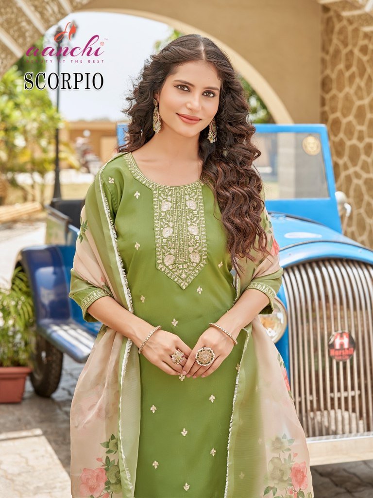 Scorpio by Aanchi 3 piece Straight Roman shimmer readymade suit collection with low rate , Discover elegance with Scorpio by Aanchi a premium 3-piece Roman shimmer straight-cut readymade suit collection at an unbeatable low price. Perfect for festive occasions and everyday glam.