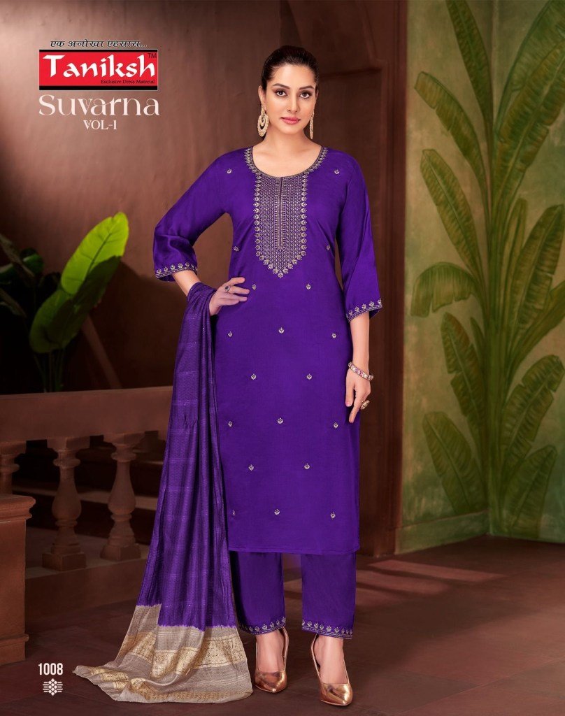 Suvarna vol 1 by Taniksh Fancy Roman Embroidered Kurti pant and dupatta catalogue at affordable rate