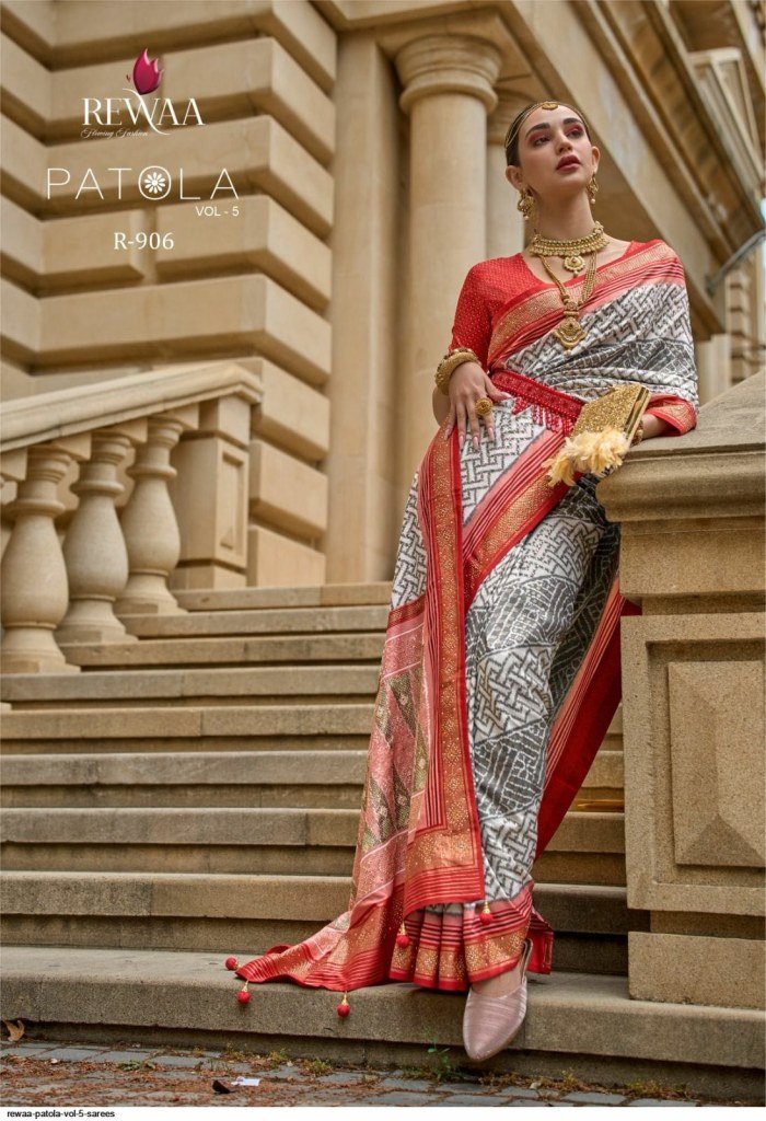 Trirath Rewa Patola Vol-5 Mercerizer Sigma Silk Classic Patola Saree with Sambalpuri Pallu And Aqua Finish Wholesale