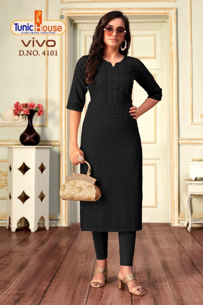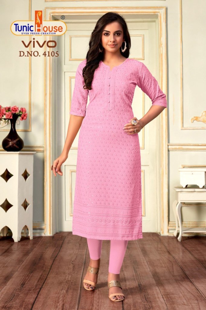 Tunic House Vivo Chikankari Sequence Kurti Viscose Rayon Designer Kurti Wholesale