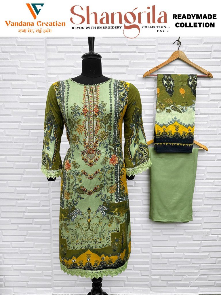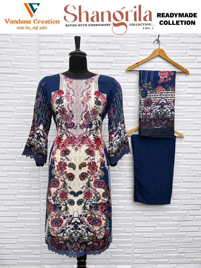 Vandana Creation Shangrila Vol 1 Reyon Digital Print Top with Embroidered Neck And Bell Sleeves Plazzo Bottom Cotton Mall Dupatta with Lace on Gala D