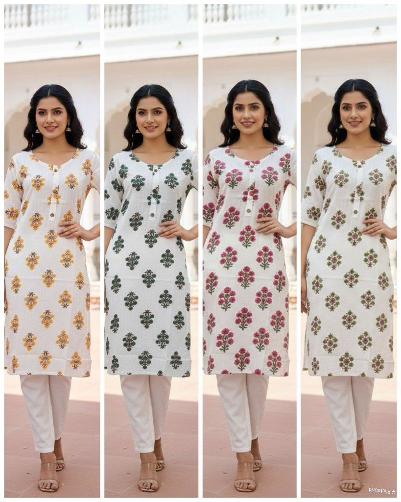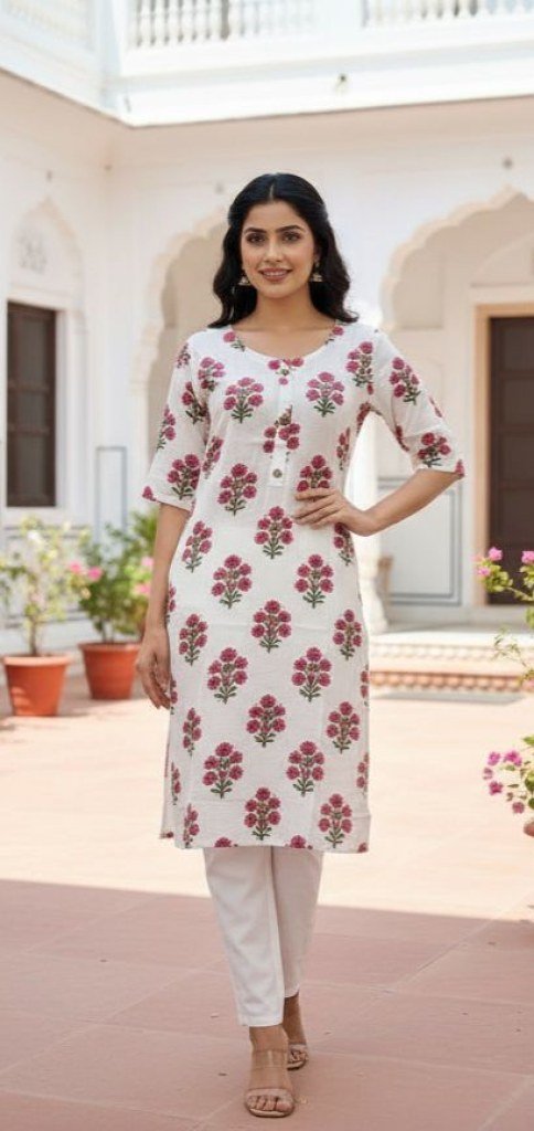 White Beauty Rayon Printed Kurti with Side Pocket And Dupatta Wholesale