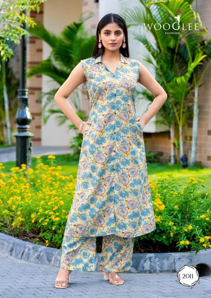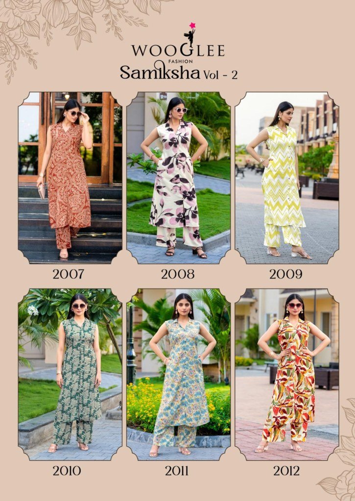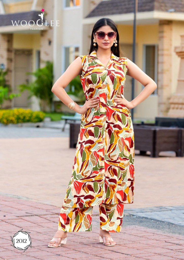 Wooglee Samiksha Vol 2 Rayon Printed Top with Fabric Attached Sleeves And Rayon Printed Bottom Set Wholesale