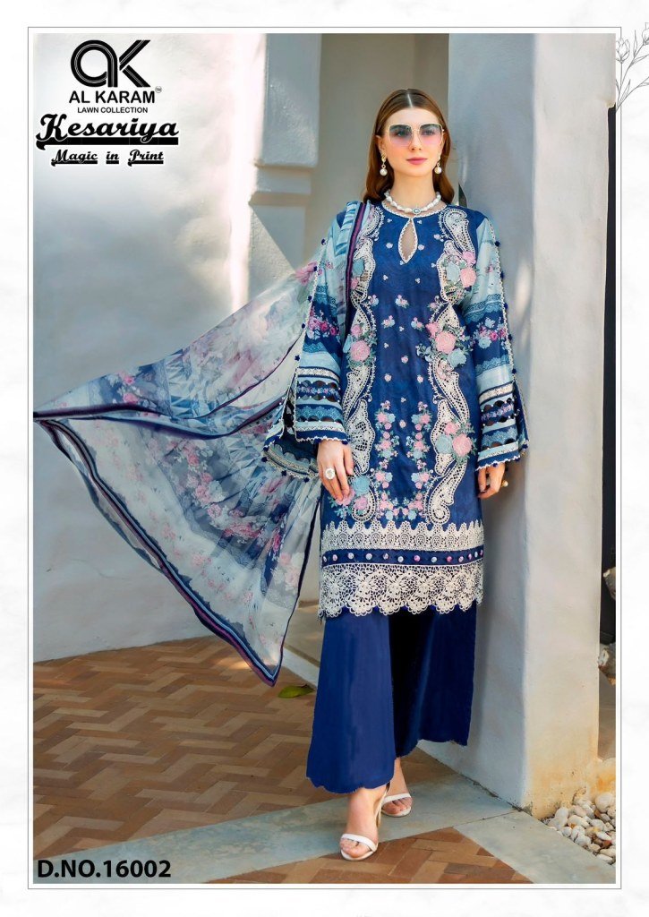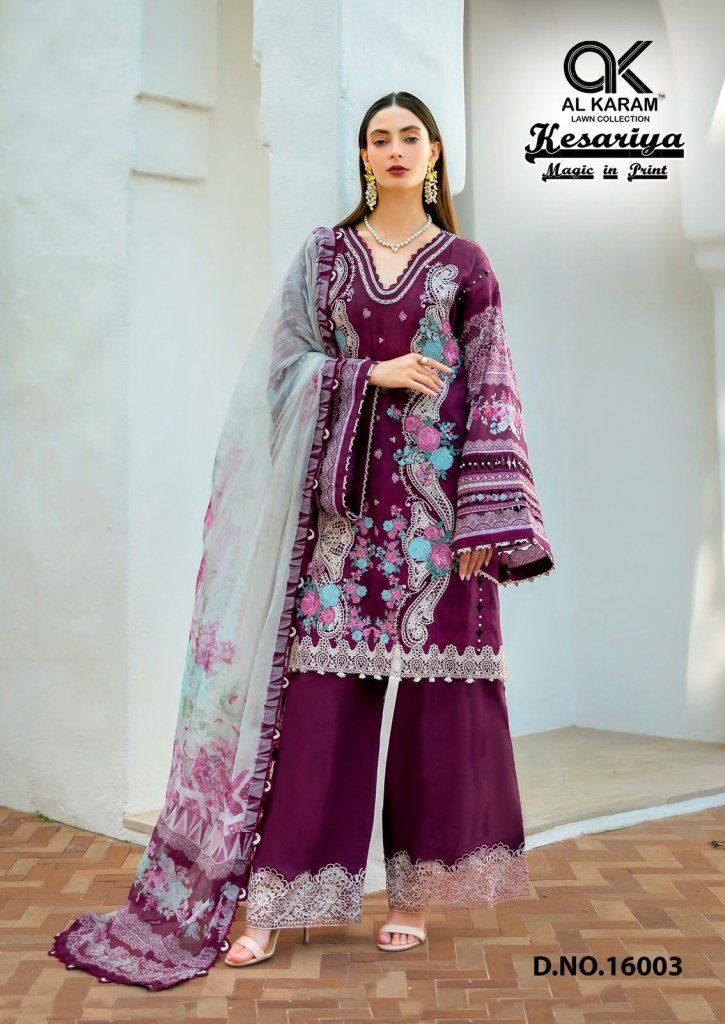 AL Karam Kesariya Magic Print Vol 16 Pure Cambric Unstitched Top And Bottom with Mal Mal Dupatta Wholesale