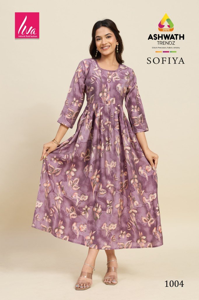 ASHWATH Kurtis Launches sofiya Chanderi Foil Print stylish ghera printed kurtis Catalogue pcs wholesale rate