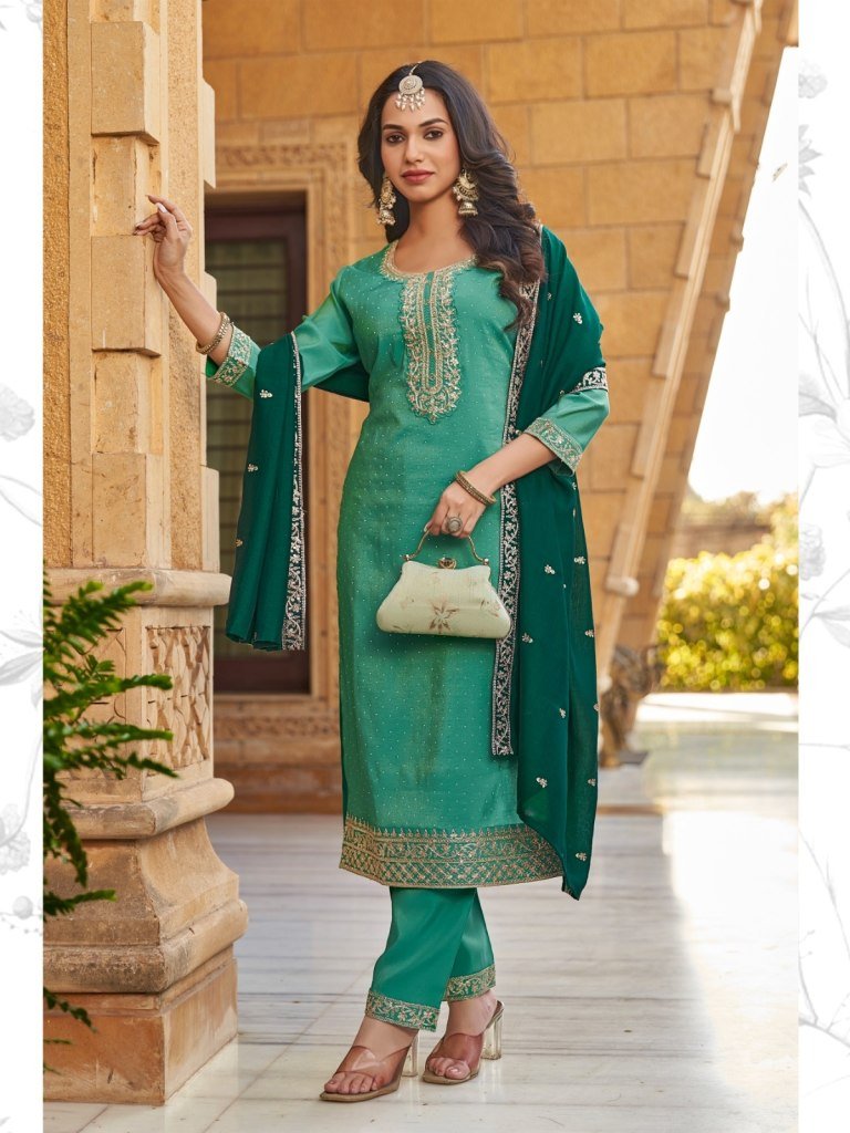Aanchi Goldy Roman Shimmer Straight Suit Pant with Vichitra Silk Fancy Dupatta Wholesale