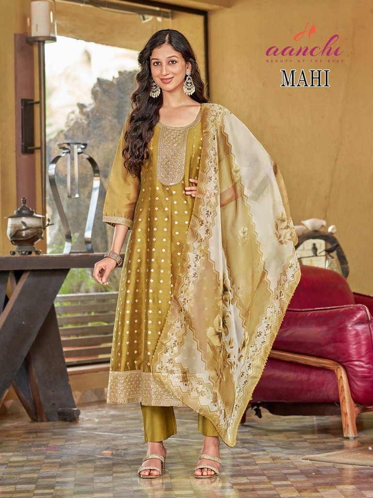 Aanchi Mahi 3 Piece Set Shimmer Jacquard Top Chanderi Pant And Digital Dupatta Wholesale