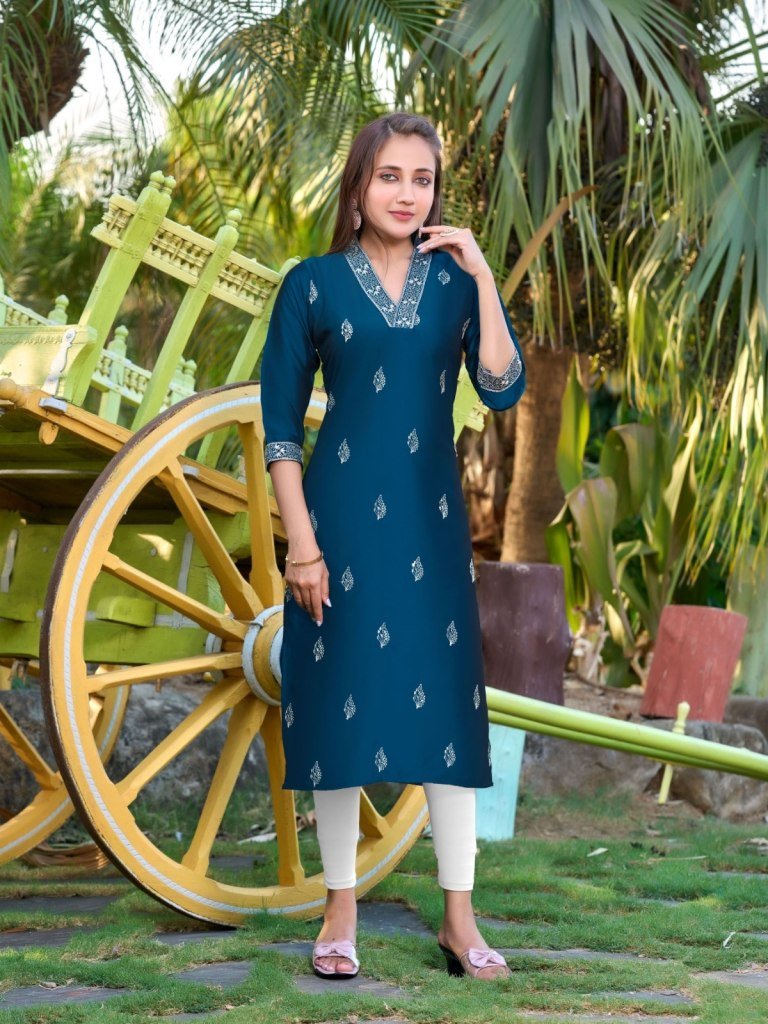 Aanchi Prachi Rangila Silk Straight Cut Kurti with Fancy Neck And All Over Embroidery Work Wholesale