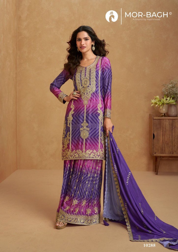 Aashirwad Creation Ria Premium Chinnon Silk Top, Palazzo And Dupatta Wholesale