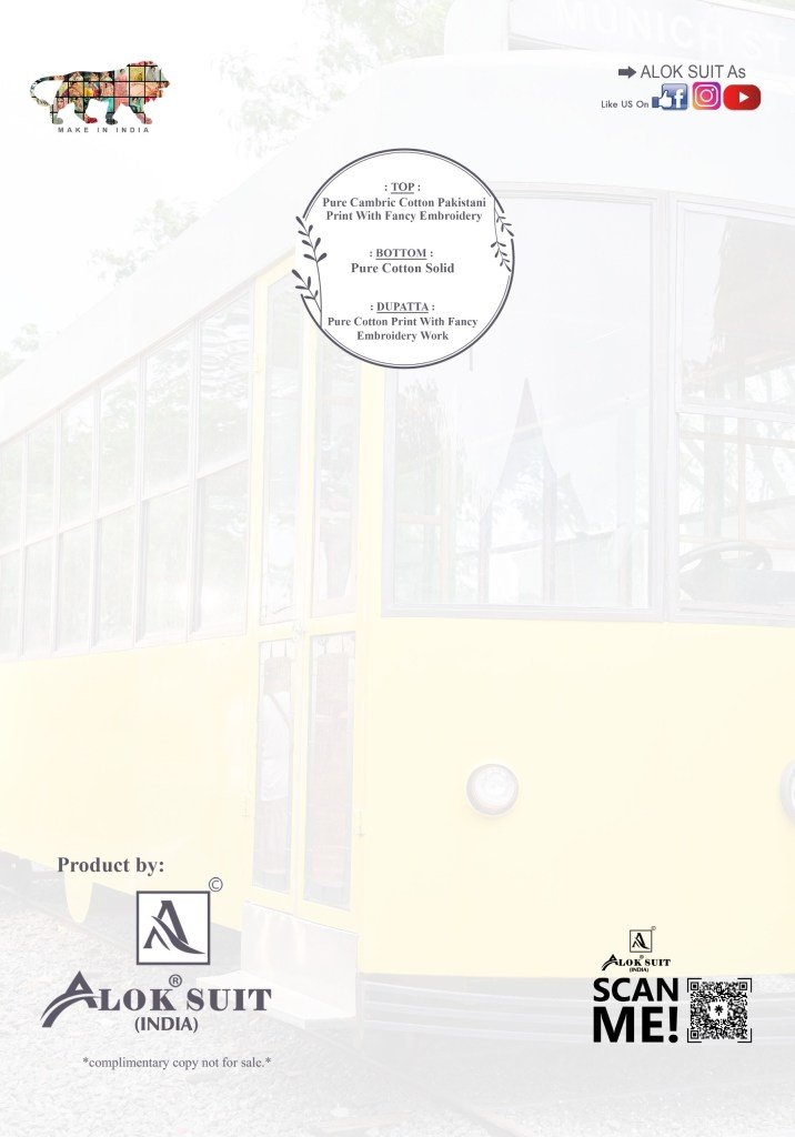 Alok Suits Bin Saeed-8 Pure Cambric Cotton Embroidered Suit Unstitched with Cotton Bottom And Dupatta Wholesale
