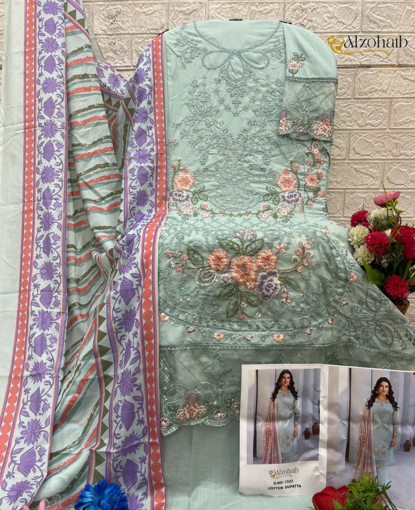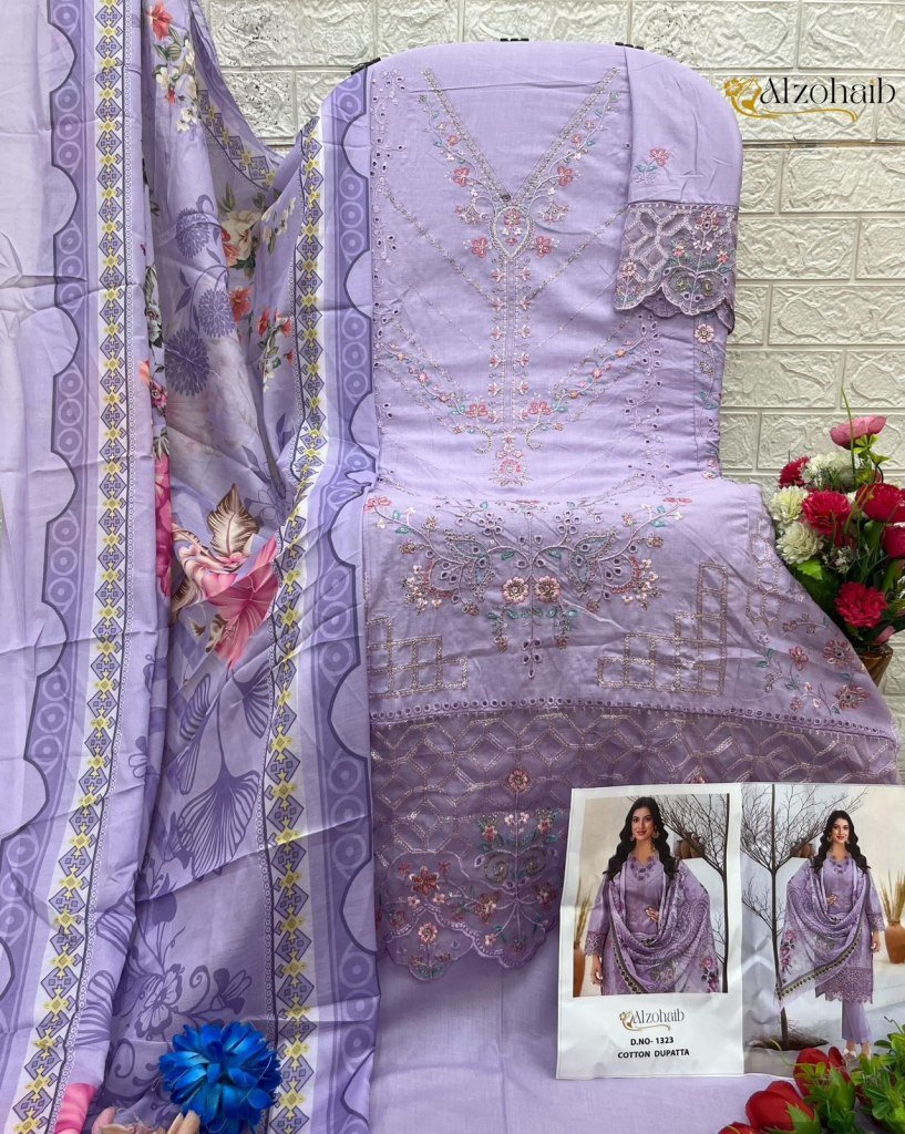 Alzohaib D No 1320 1321 1322 1323 1324 1325 Cotton Elegance Unstitched Suit Classic Cotton Salwar Kameez Wholesale