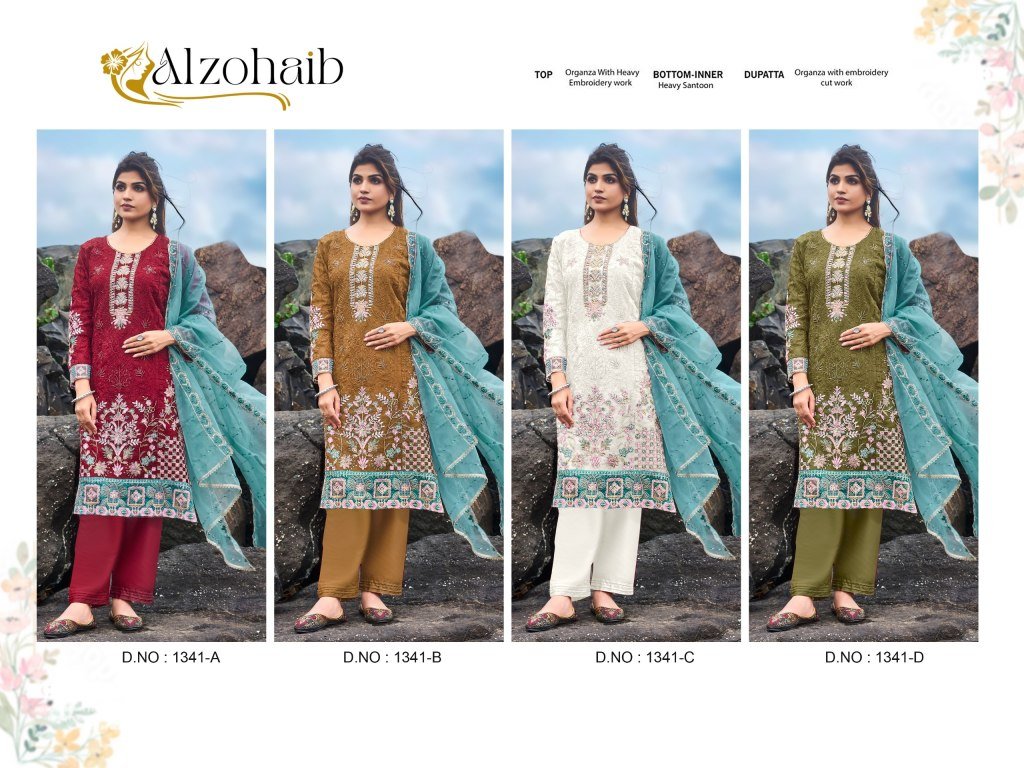 Alzohaib D n 1341 Bcd Organza Khatli Work Embroidered Pakistani Salwar Kameez Wholesale