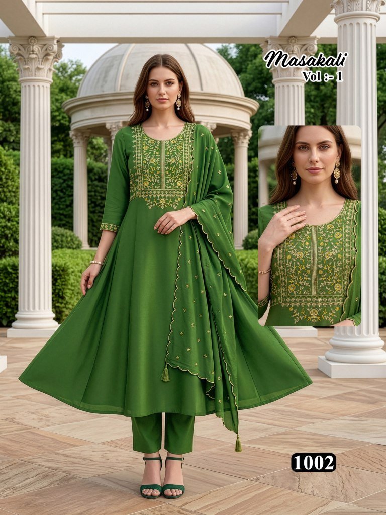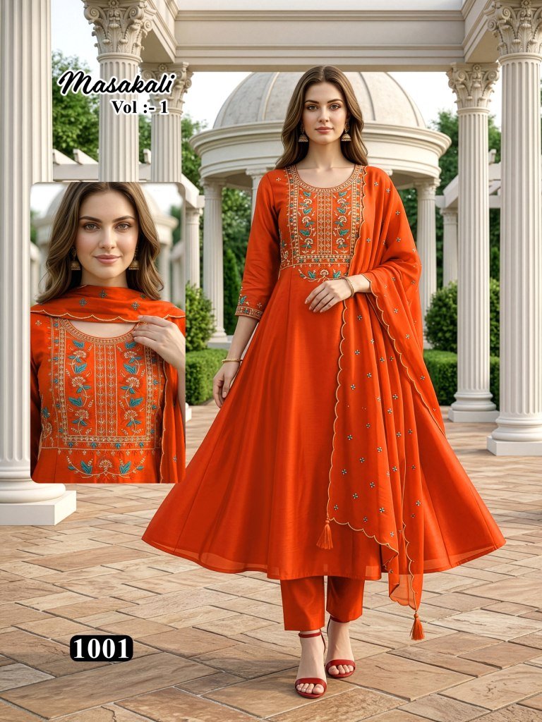Amavi Masakali Vol 1 Mal Chanderi Silk Embroidered Kurti Set with Dupatta (M–3XL)