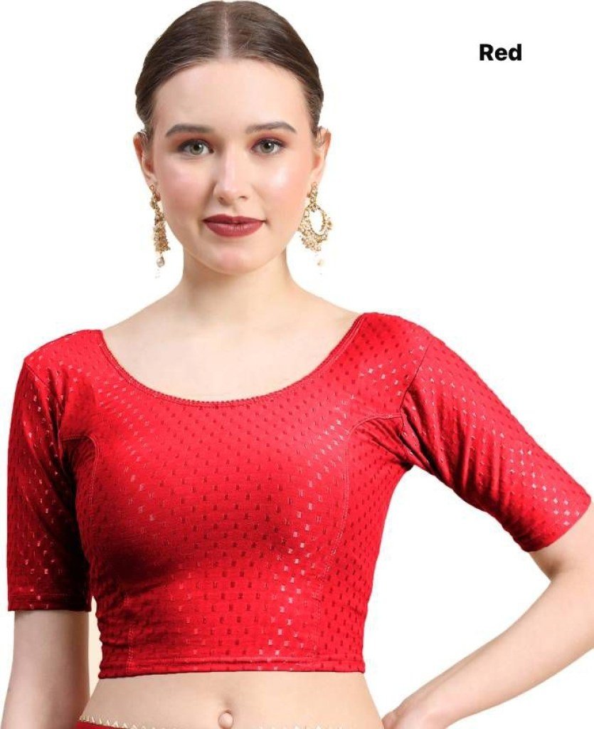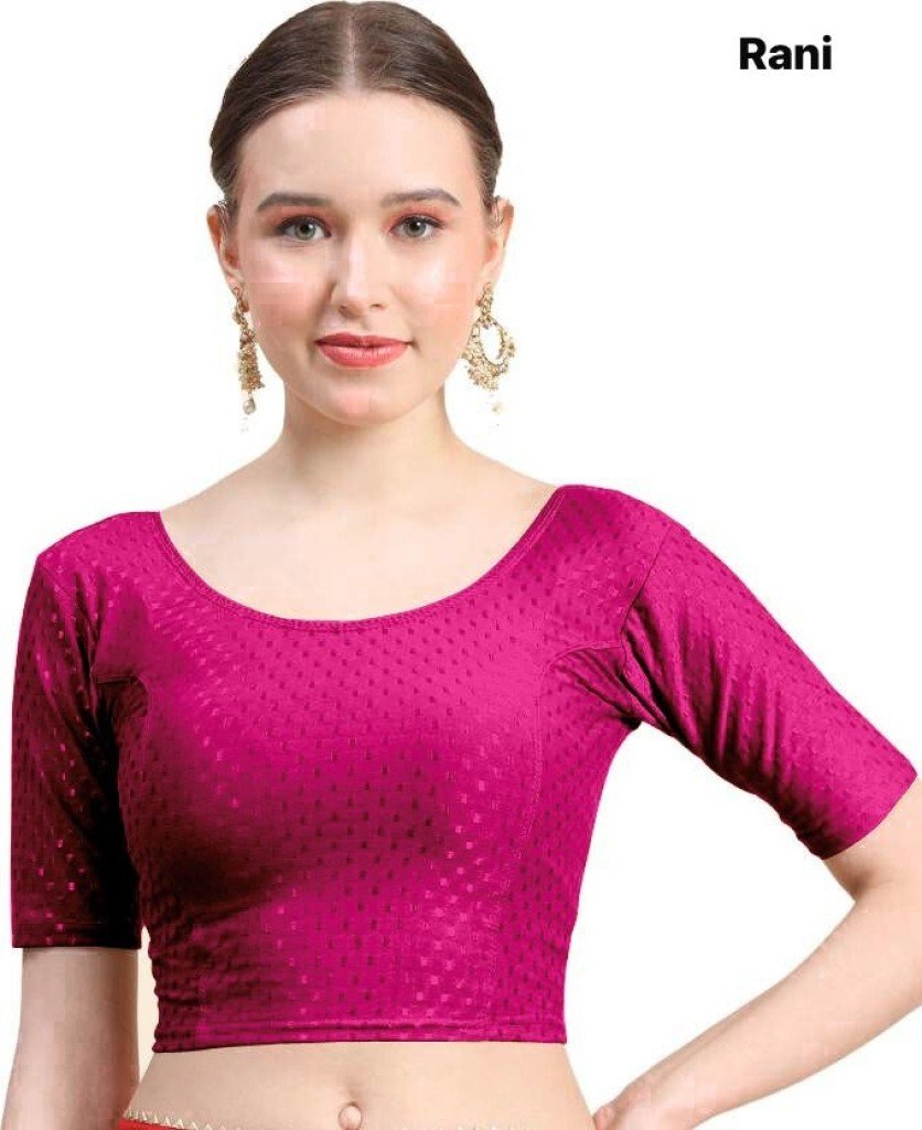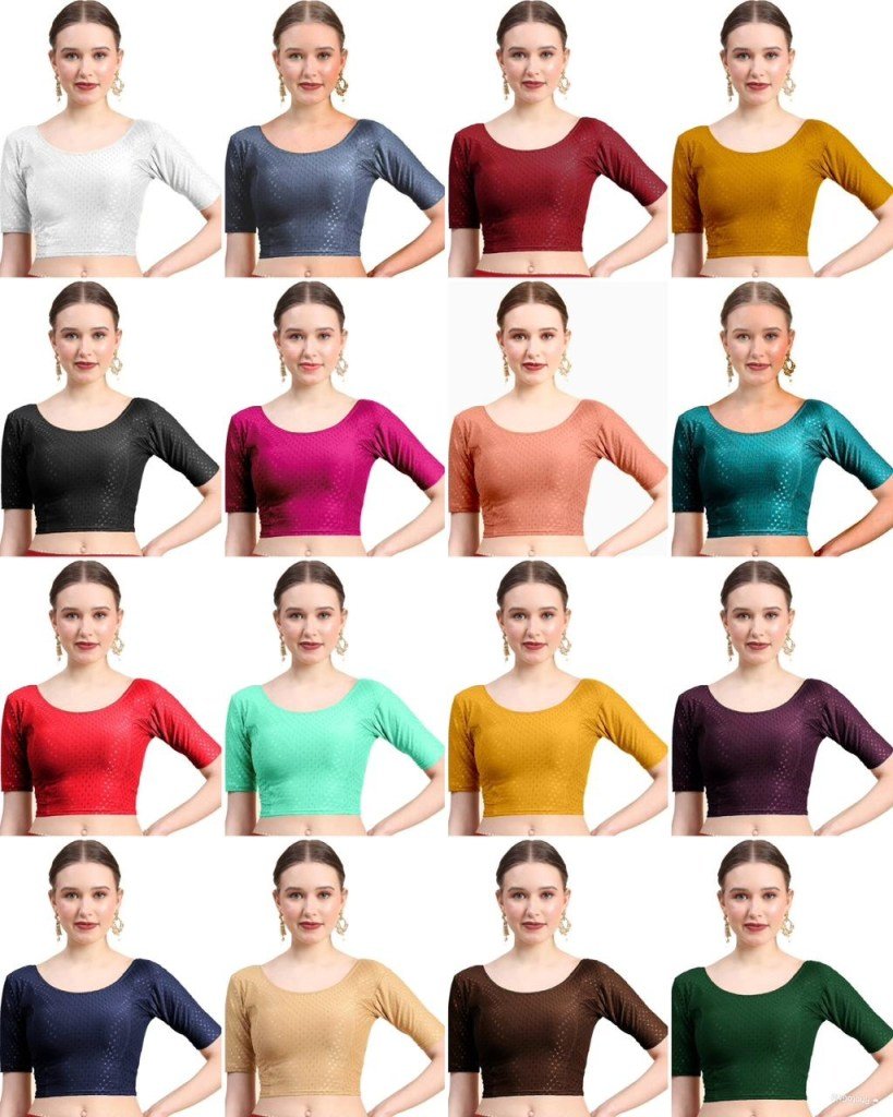 Amavi Traditional Saree Blouse with Modern Round Neck Dobby Cotton Lycra Wholesale