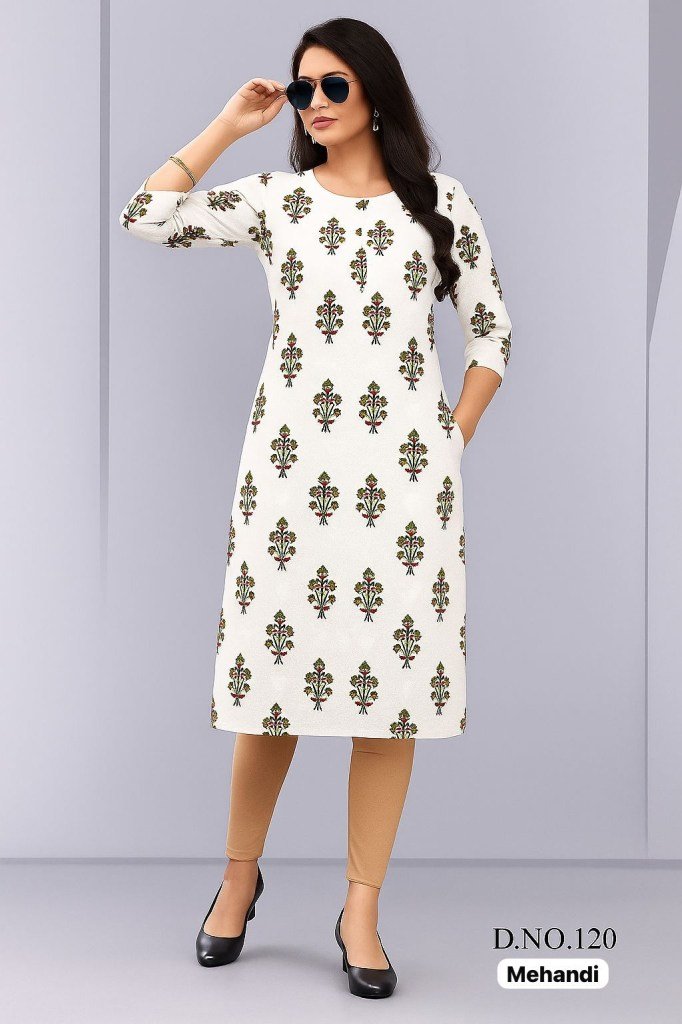 Amavi White Straight Printed Rayon Kurti with One Side Pocket for Women Wholesale