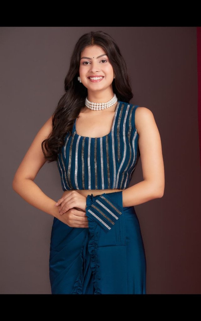 Amoha Trendz D No 102130 Adde Drive Link Ready to Wear Lycra Saree with Lace Work Frill Border And With Blouse Wholesale