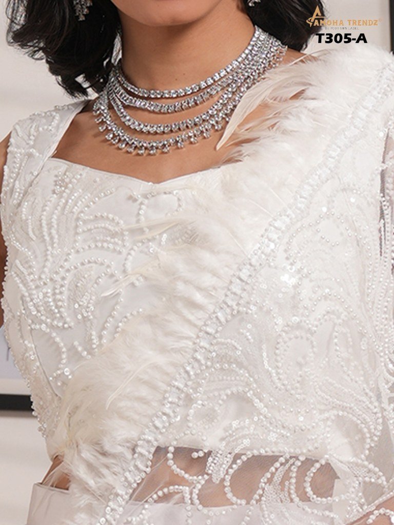 Amoha Trendz T305 Armani Satin Embroidered Blouse Ready to Wear Saree with Hand Embroidery Wholesale