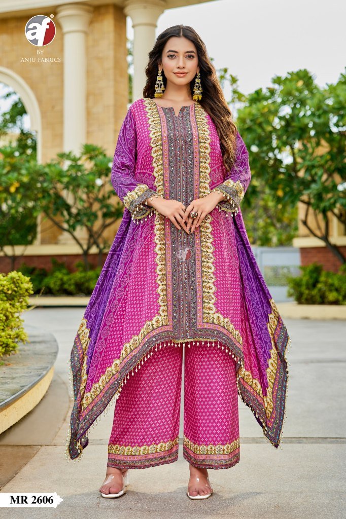 Anju Fabric Mr 2606 Designer Readymade suit Kaftan with Wide Pant Pure Crepe Wholesale