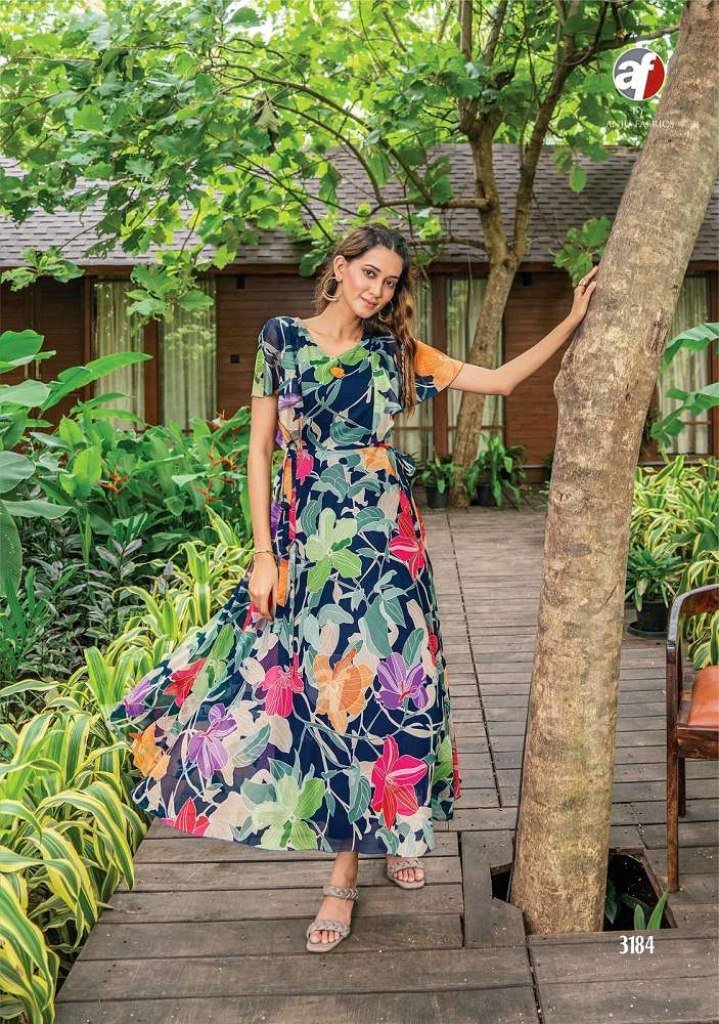 Anju Fabrics Coral Charm vol 3 exclusive designer pure viscose A line printed Kurti catalogue wholesale