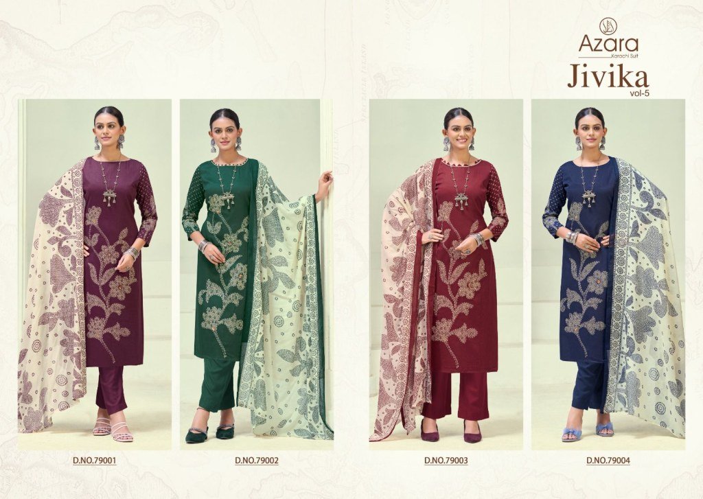 Azara Jivika Vol 5 Pure Heavy Zam Cotton Designer Print Top with Hand Work Mal Cotton Print Dupatta Rayon Bottom Wholesale