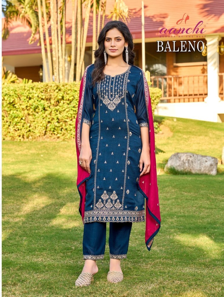 Baleno by Aanchi Vichitra silk 3 piece straight top bottom and dupatta at low rate