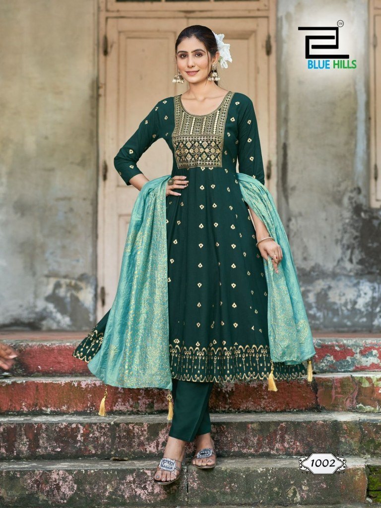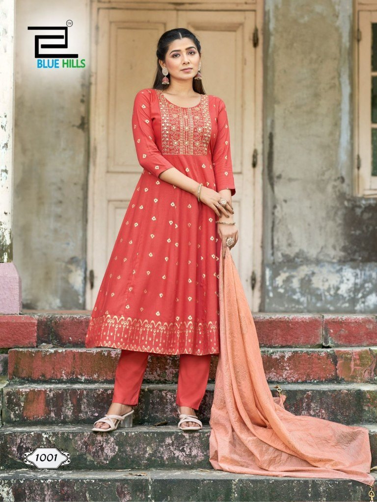 Batu Caves by Blue Hills collection featuring heavy Chanderi printed fancy Anarkali suits at a low price. Perfect for festive and special occasions, these designer pieces blend tradition and modernity effortlessly.