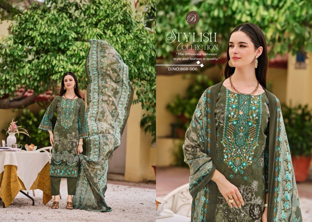 BelliZa Designer Studio Naira Vol 112 Unstitched Pure Cotton Suit Set with Exclusive Embroidery and Mal Mal Digital Dupatta Wholesale