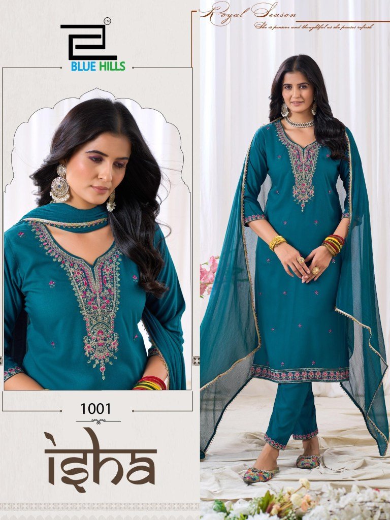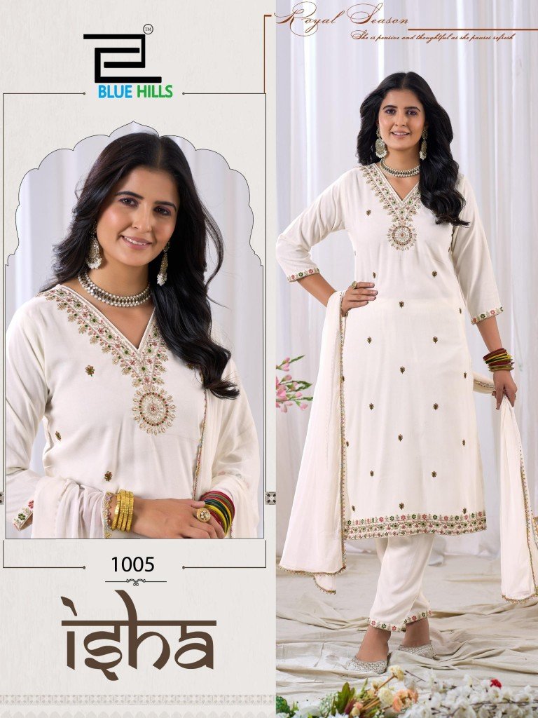 Blue Hills Kurti Isha Lace Work Dupatta Nazmin with Multi Colour Dori And Sequin Embroidery Wholesale