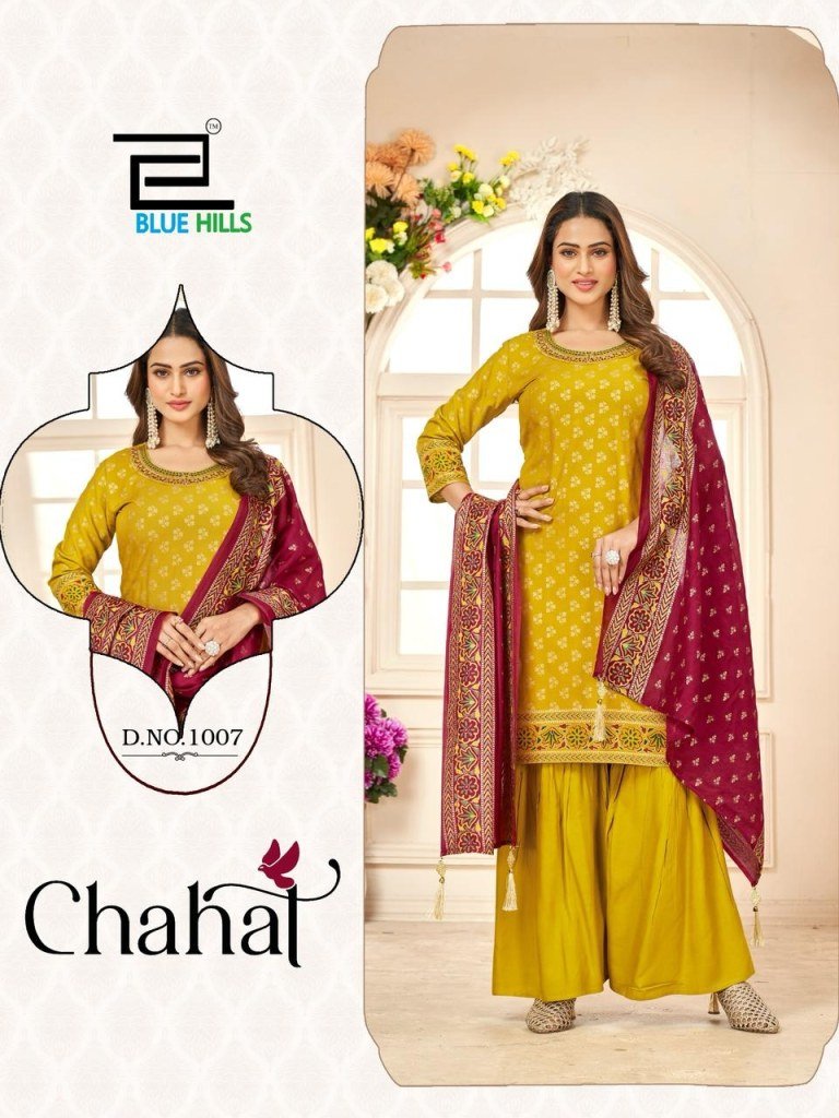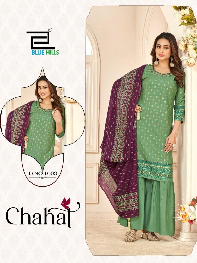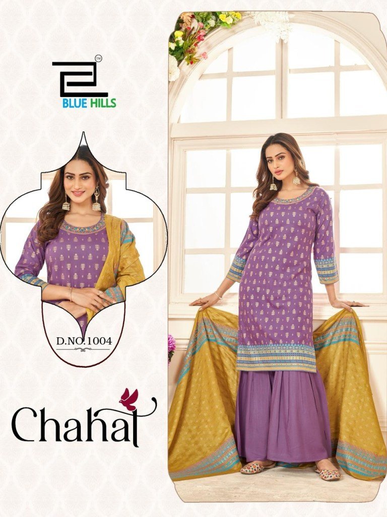 Chahal by Blue Hills Reyon Foil Printed Designer Readymade suit catalogue at affordable rate, Explore the Chahal by Blue Hills collection featuring Reyon foil printed designer readymade suits at an affordable rate. Shop elegant ethnic wear with intricate designs and premium fabric.
