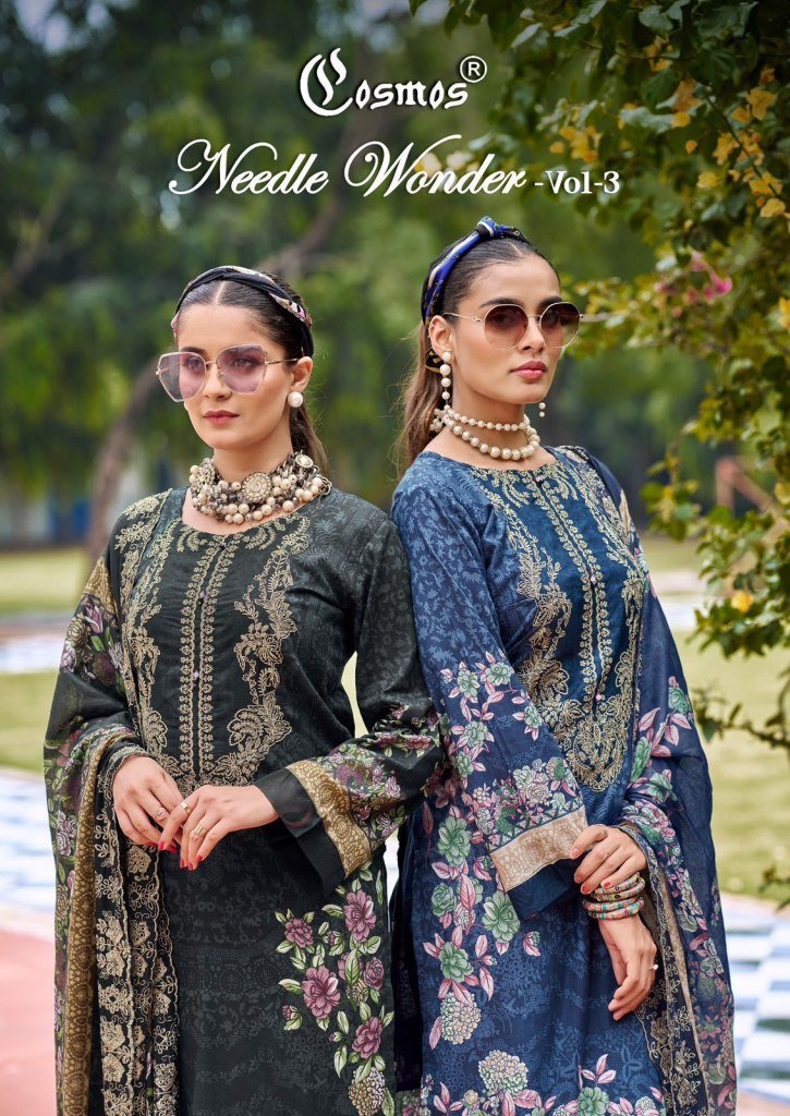 Cosmos Needle Wonder Vol 3 Lawn Cotton Embroidered Suit with Pure Mal Mal Cut Work Dupatta Unstitched Collection Wholesale