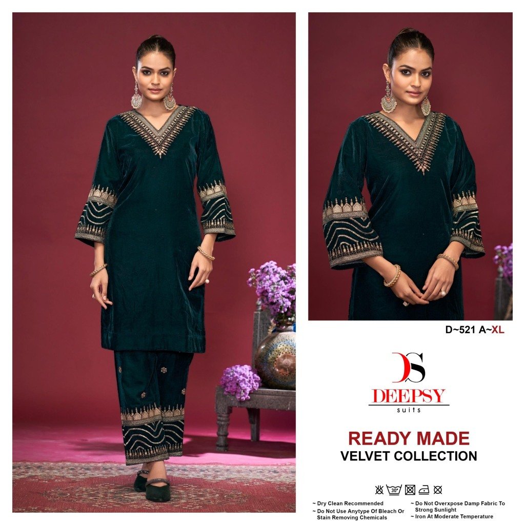 D 521 ABCD by Deepsy suit fancy velvet embroidered readymade suit catalogue at affordable rate