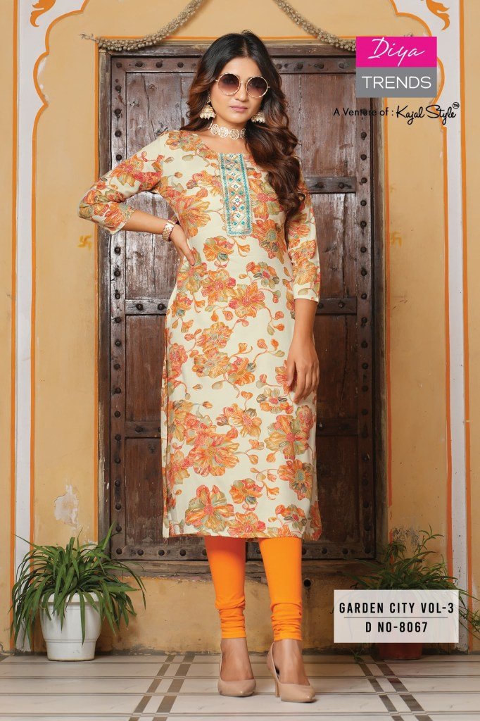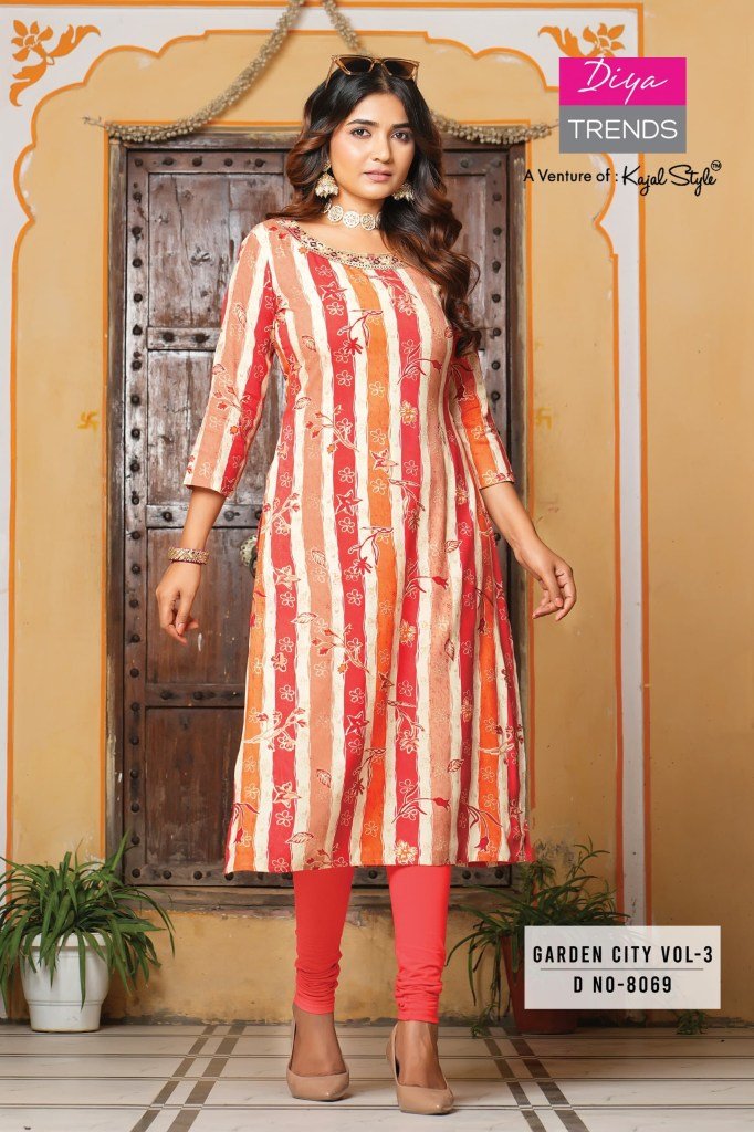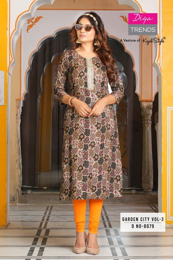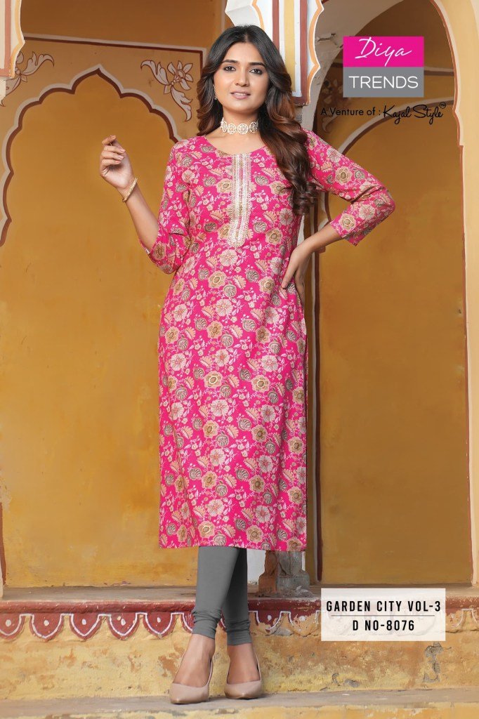 DNO 8056 To 8079 by Diya trends reyon printed elegant kurti catalogue