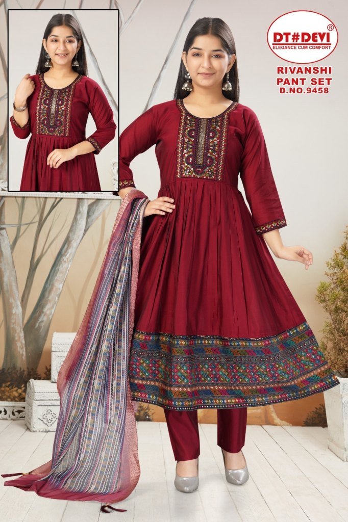 DT Devi Rivanshi Pant Set Roman Silk umbrella sttyle Catalogue Wholesale Rate