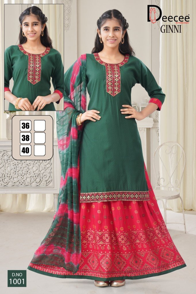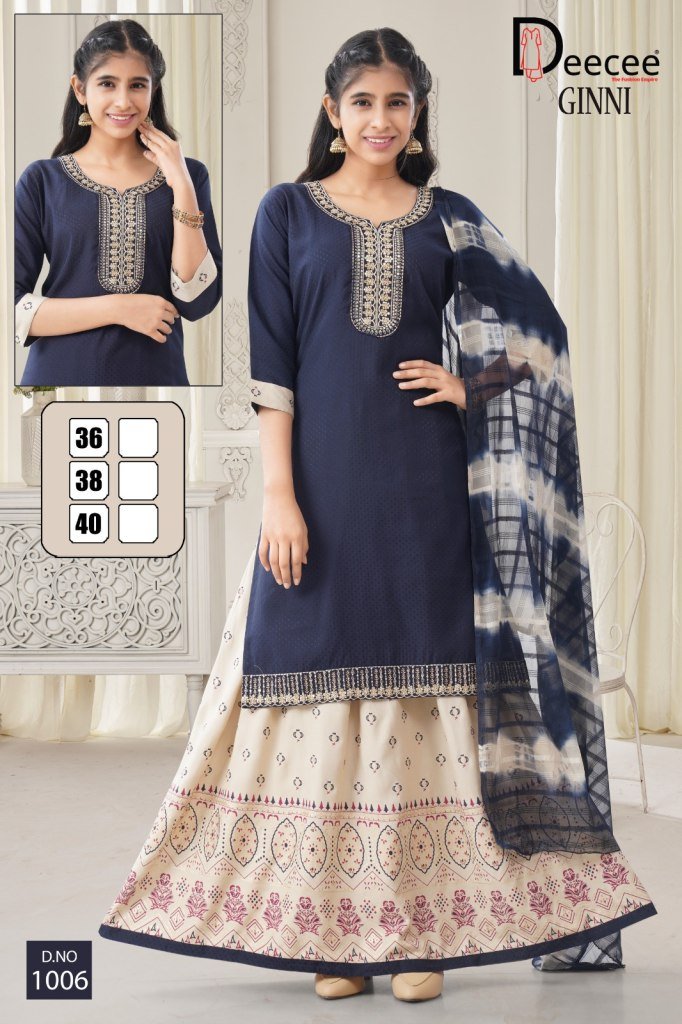 DeeCee Ginni Embroidered Straight Kurti with Rayon Gold Print Ghagra And Naznin Batik Dupatta Wholesale